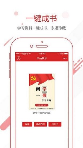 【一键成书】所有上传内容均可以根据不同主题"一键成书",可一本印刷,方便留存和向上级汇报。系统支持自动排版、目录生成、页码编排等智能功能,用户只需选择需要汇总的内容,即可生成符合规范的专业文档,大大提升了工作效率。