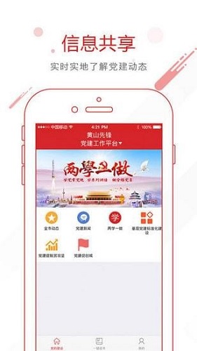 黄山先锋app是一款专为黄山地区党员打造的智能化移动办公平台,它以"互联网+党建"的创新模式,将传统党建工作与现代信息技术完美融合。这款应用不仅能够实时推送最新的国家政策和党内资讯,还构建了一个集学习、管理、交流于一体的数字化平台。党员用户可以通过手机随时查阅党内文件、参与在线学习、提交工作汇报,实现党组织与党员之间的高效互动。其人性化的设计让党建工作突破时空限制,真正做到了"指尖上的党建",为黄山地区的党员教育管理工作注入了新的活力。