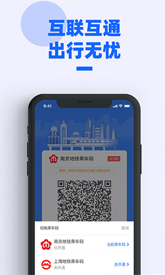 2、互联互通:支持与其他城市轨道交通系统的无缝对接,出差旅游时只需一键切换乘车码,即可畅行全国多个城市的地铁网络;