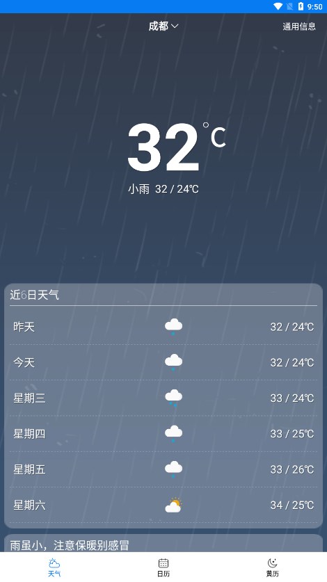 8.新增可视化天气趋势图表功能,直观展示未来7天的温度、降水概率等关键指标的变化趋势。