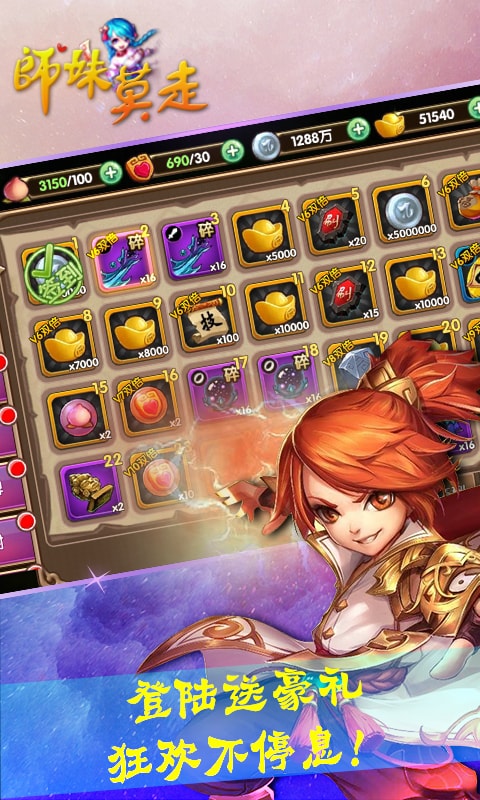 1、创建角色即送V5特权、30000元宝、80万铜钱,还有大量稀有道具等你来拿!