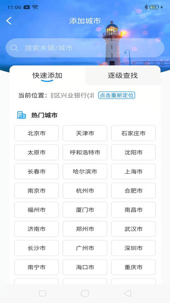 3.创新的位置管理功能,除常规的城市添加外,还支持GPS精确定位。可以保存家庭、公司、学校等常去地点的天气信息,一键切换查看不同位置的实时气象状况。