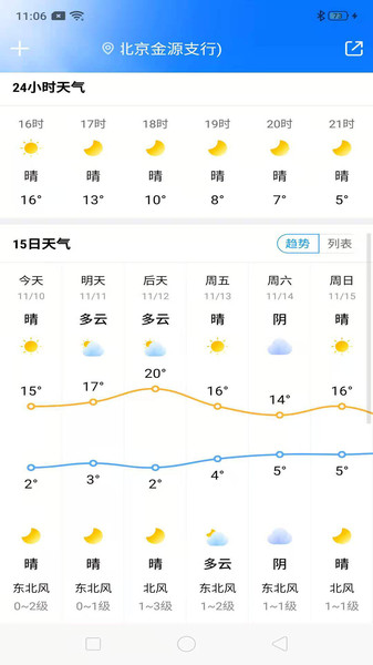 提供未来24小时精确到小时的天气预报,包括温度、降水概率、风力风向等关键指标。直观的温度曲线图让您一眼看清全天温差变化,便于适时增减衣物,预防感冒等季节性疾病。