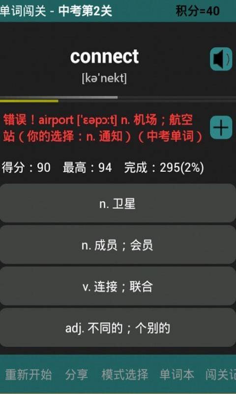 1、创新的闯关模式带来全新体验,游戏选项隐藏正确答案与错误答案,每道题目都会根据选择扣分或加分,考验玩家的词汇判断能力。2、词汇库覆盖小学基础到高考、托福等高级考试内容,知识体系全面且分层清晰,满足不同阶段学习需求。3、所有单词释义均源自牛津词典权威翻译,确保定义精准完整,搭配例句和用法解析,让学习更专业可靠。
