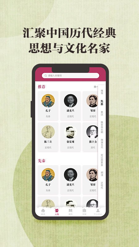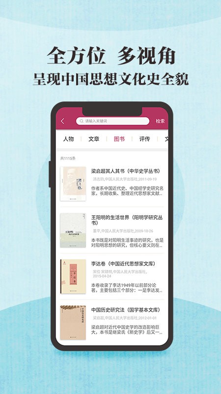 中国思想与文化名家数据库app是一款汇聚中华五千年思想精华的权威知识平台。该应用以系统化、专业化的方式呈现从先秦诸子到近现代思想家的经典著作与学术成果,涵盖哲学、文学、历史等多个领域。用户可通过智能检索、分类浏览等功能,轻松获取包括《康有为全集》《梁启超全集》等珍贵文献在内的24万余篇著作全文。平台特别注重学术性与普及性的结合,既为研究者提供详实的原始资料和研究成果,也为普通爱好者设计了直观易用的阅读界面。通过人物年谱、学术评价、关联知识图谱等特色功能,让用户能够立体化理解每位思想家的学术脉络和历史地位。