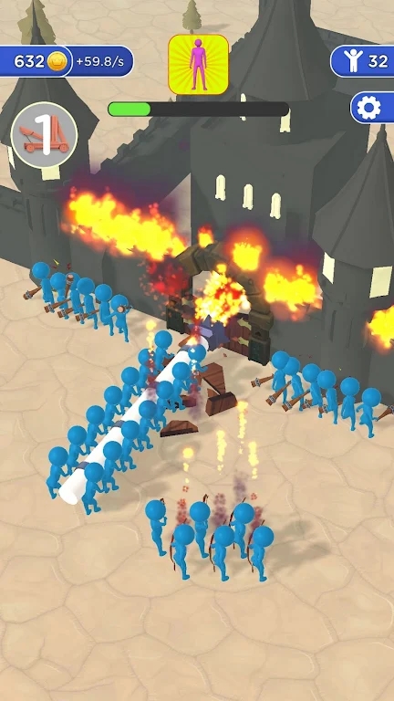 《空闲锤城堡围攻》是一款充满策略与冒险元素的休闲游戏,玩家将扮演一名攻城指挥官,率领士兵们使用巨型攻城锤突破坚固的城门。游戏采用独特的火柴人画风,在幽默诙谐的氛围中体验紧张刺激的攻城战。你需要合理部署兵力,制定战术策略,在敌人猛烈的反击下尽量减少伤亡。随着游戏进程,可以不断壮大自己的军团,挑战更强大的对手,体验从弱小到强大的成长乐趣。