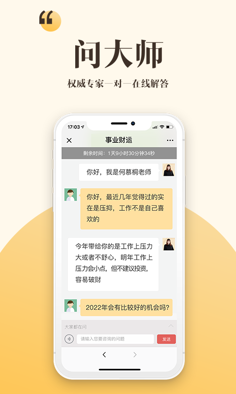 【专家动态】用户可以关注心仪大师的动态,了解最新预测观点和命理知识,在轻松互动中开阔视野、增长智慧。