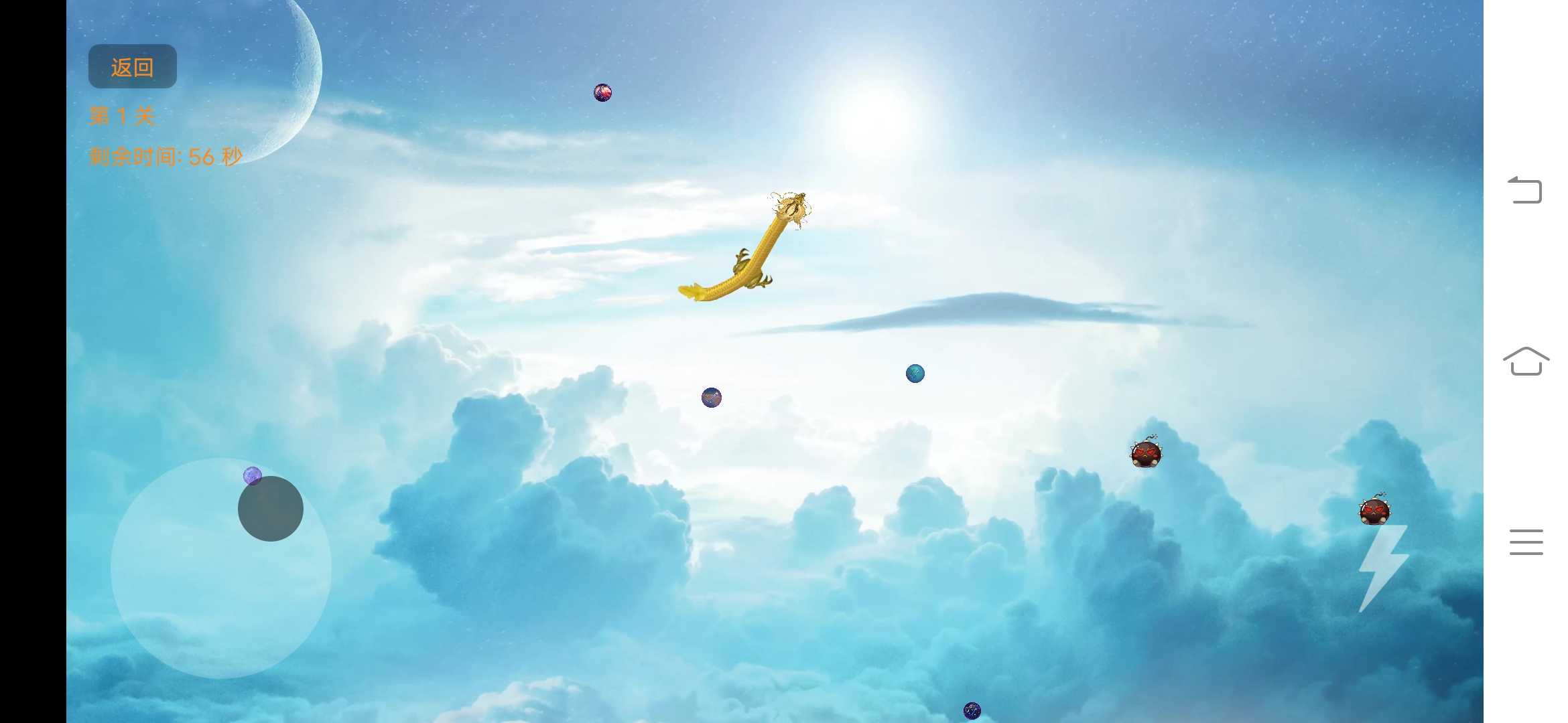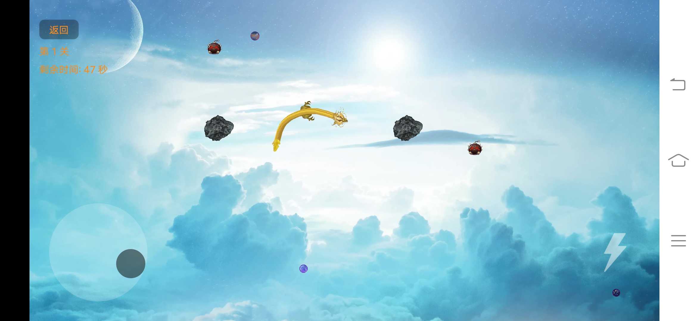 《飞龙在天》是一款操作简单但充满挑战性的休闲小游戏。游戏采用直观的双摇杆操控系统,左手虚拟摇杆精准控制飞龙飞行方向,右手按键可调节飞行速度,实现灵活走位。在危机四伏的天空中,玩家需要巧妙避开随机出现的炸弹和高速坠落的陨石,同时捕捉珍贵的龙珠。每收集一定数量的龙珠,飞龙就会发生华丽的进化变身,体型和力量都会显著提升。游戏还设置了昼夜交替的动态天气系统,为冒险增添更多变数。