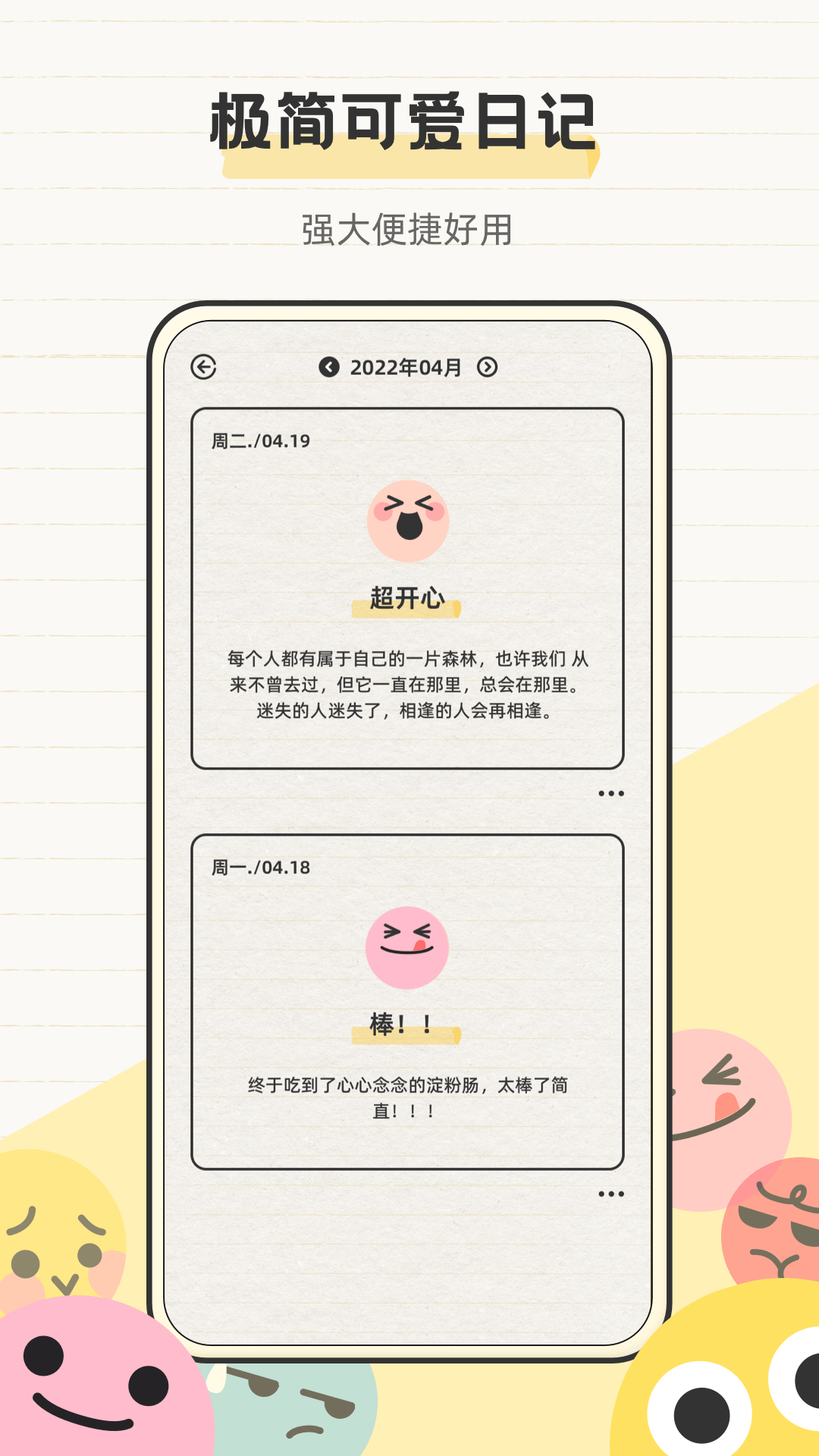 - 极致使用体验:在保持简约可爱的界面风格同时,提供强大实用的功能组合,让写日记成为一种享受而非负担。