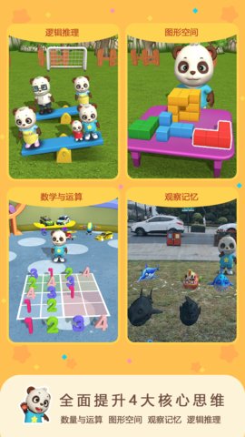5,全面提升4大核心思维-----数量与运算,图形空间,观察记忆力,逻辑推理。每个模块都配有专门的训练游戏,全方位开发儿童智力潜能。