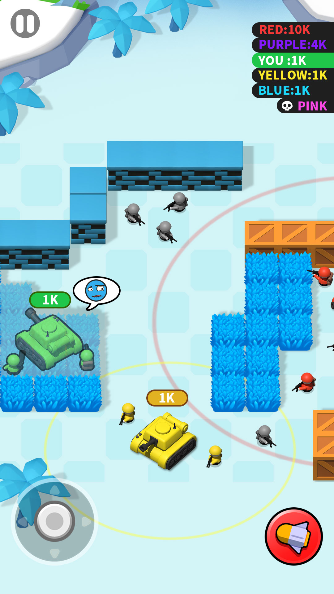 四人坦克战是一款充满策略与竞技乐趣的多人对战游戏,玩家可以操控坦克在多样化的地图中展开激烈对抗。游戏支持最多四名玩家同屏竞技,每名玩家可以选择不同属性的坦克,利用地形和道具击败对手。游戏画面简洁明快,操作简单易上手,但深度策略性让对战充满变数。无论是与朋友本地联机还是单人挑战AI,四人坦克战都能带来紧张刺激的坦克对决体验。