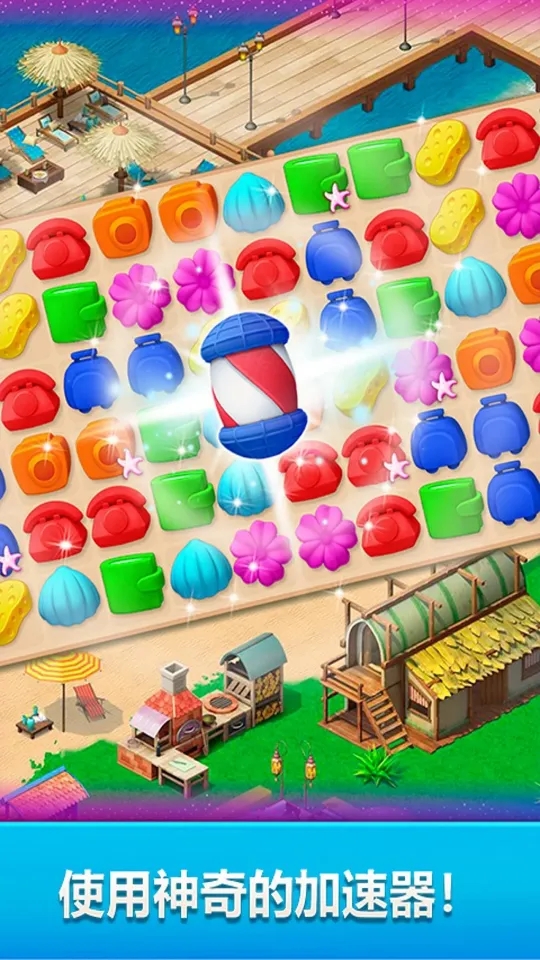 游戏拥有数百个精心设计的Match-3关卡,难度循序渐进,既适合休闲玩家也能满足挑战爱好者。独特的Match-3机制加入了连锁反应和特殊道具组合系统,让每次消除都充满惊喜。游戏将消除玩法与度假酒店建设完美结合,让您在享受消除乐趣的同时还能体验经营的成就感。引人入胜的故事情节贯穿始终,每个NPC角色都有独特的性格和背景故事。每日登录奖励和限时活动让游戏保持新鲜感,还有丰富的社交功能让您能与好友一起分享建设成果。
