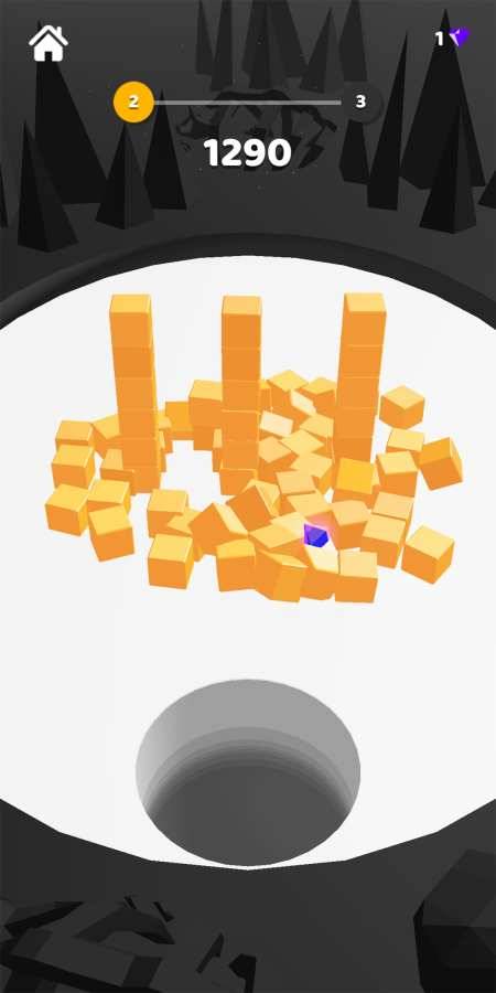 3、游戏的核心玩法是让方块尽可能多地进入黑洞,但这需要玩家精准掌握移动节奏和方向控制。随着黑洞体积增大,操控难度也会相应提升,这种渐进式的挑战让游戏充满成就感。