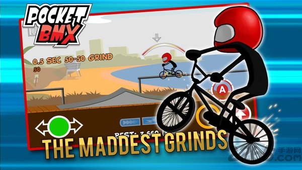 《口袋小轮车PocketBMX》是一款极具创意的体育竞技游戏,采用独特的二维卡通风格呈现。游戏中你将扮演一位戴着安全头盔的火柴人车手,骑着自行车穿梭于小镇各处,完成各种高难度特技动作来拯救你的家园。游戏精心设计了7个不同主题的场景,每个场景都拥有独特的障碍物和地形特点。玩家可以学习并掌握超过18种源自现实世界的小轮车特技动作,包括后轮滑、前轮滑、360度旋转等。更令人兴奋的是,你可以将这些技巧自由组合,创造出属于自己的独特表演。游戏还设有丰富的任务系统,让你在拯救小镇的过程中不断挑战自我。