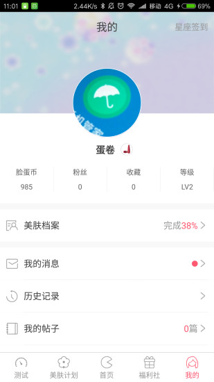 【我的】个性化管理中心,可查看个人护肤档案、收藏内容和互动消息,支持自定义皮肤类型和护肤偏好,打造专属的美肤体验。