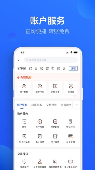 全天候企业银行服务!突破传统网点营业时间限制,支持7×24小时在线办理对公业务,包括实时跨行转账、电子回单打印、月结单下载等核心功能,更可通过空中柜台完成企业信息变更预约,大幅提升办公效率。