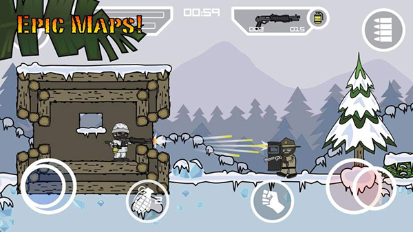 1、游戏虽然难度适中,但战斗过程充满刺激感。玩家需要通过左侧虚拟摇杆控制移动和飞行上升,右侧按键负责瞄准射击,同时还要灵活运用近战攻击和手榴弹等装备。虽然基础操作不难掌握,但要成为战场高手仍需大量练习,只有熟练掌握各种技巧才能称霸战场。