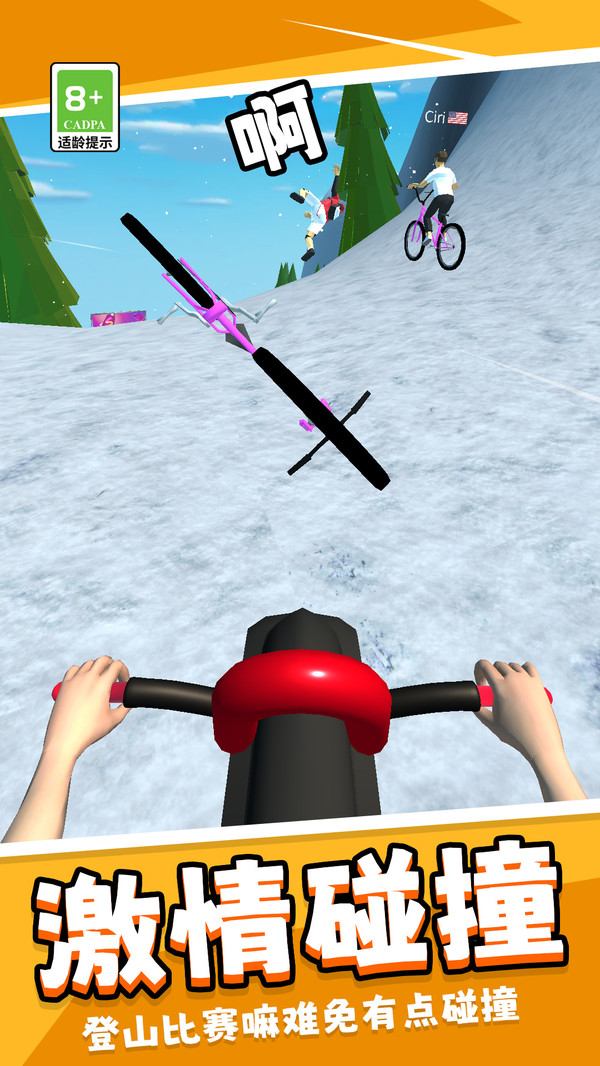 《疯狂单车》是一款令人肾上腺素飙升的3D竞速游戏,将玩家带入一个充满速度与激情的虚拟骑行世界。在这里,你可以从数十款造型炫酷、性能各异的自行车中挑选心仪座驾,在逼真细腻的游戏场景中展开惊心动魄的竞速对决。游戏采用先进的物理引擎,完美还原了真实骑行时的操控感和速度感,无论是陡峭的山路、蜿蜒的城市赛道还是充满障碍的特技场地,都能让你体验到身临其境的快感。通过不断挑战各种难度关卡,解锁更强大的自行车装备,提升车辆性能,最终成为赛道上的王者。