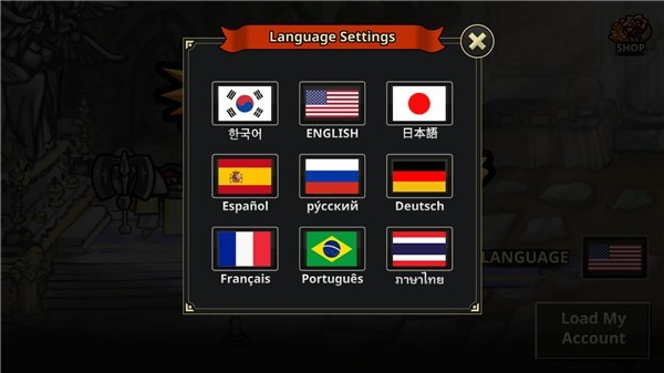 2、进入游戏首页,右边language玩家可以通过它调节系统语言。游戏支持多种语言切换,方便不同地区的玩家游玩。