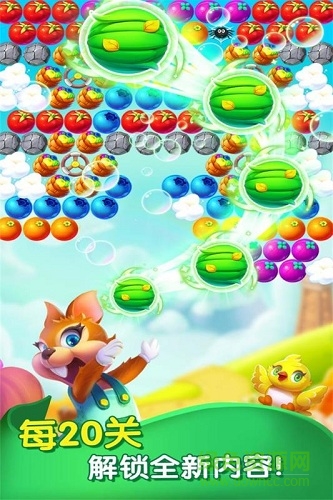 《泡泡农场大作战》是一款融合了泡泡龙玩法和农场经营元素的休闲游戏。故事发生在一个神奇的森林里,邪恶的魔法泡泡困住了可爱的小鸟和美味的水果。玩家将扮演勇敢的小松鼠,通过发射泡泡来消除障碍,解救被困的生物。游戏不仅考验玩家的射击技巧,还需要合理规划农场经营,收集水滴来培育水果泡泡,为冒险提供必要的补给。随着关卡的推进,玩家将解锁更多有趣的玩法和场景,体验一场充满欢乐与挑战的冒险旅程。准备好和小松鼠一起踏上这段奇妙的拯救之旅了吗?