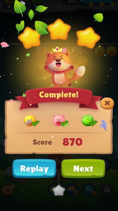 2.关卡目标:每个关卡都有特定的目标,例如消除一定数量的泡泡、解救被困的小动物等。玩家需要在有限的泡泡数量内完成目标,否则游戏失败。随着关卡推进,目标会变得越来越具有挑战性,有些关卡甚至要求玩家在限定时间内完成任务,这种多样化的目标设定确保了游戏的长久可玩性。
