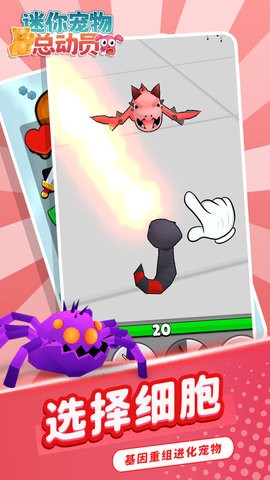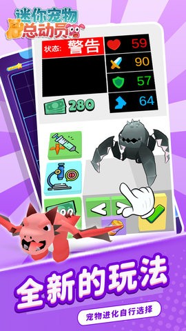 1、这是一款休闲模拟游戏。创造合适的细菌并将它们注射到您的小宠物体内。通过独特的微生物培养系统,玩家可以调配出上千种不同特性的细菌配方,每款配方都会赋予宠物特殊能力。从增强跳跃力的弹簧菌到能喷射火焰的火龙菌,这些神奇的微生物将彻底改变宠物的战斗方式。