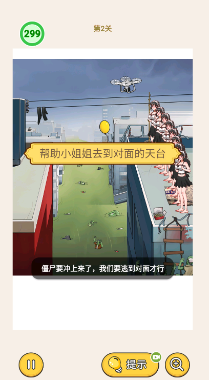 天台逃生是一个需要巧妙运用道具的解谜关卡。玩家需要使用场景中的各种物品,帮助小姐姐安全到达对面天台。具体操作步骤:首先拖动袜子给女生穿上,然后将袜子连接到电线上形成通路。灭火器需要上下滑动女生来使用,而樱桃则需要向上滑动女生。最关键的一步是连续点击地上的报纸五次,将其变成纸飞机后拖动给女生。每个道具的使用方式都经过精心设计,需要玩家开动脑筋思考物品之间的互动关系,才能成功完成救援任务。