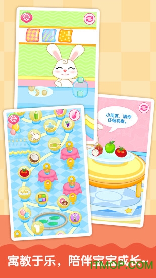 新增"逛超市"小游戏、"切蛋糕"小游戏、"记忆超人"小游戏、"做糖果"小游戏,每个游戏都配有独特的音效和动画效果,增加互动趣味性。游戏难度分为三个等级,适合不同年龄段的宝宝使用。
