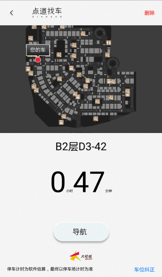 点道找车为您提供室内停车场精确地图与精准定位,您只需要在回到停车场后打开点道找车,一键导航功能即可以为您提供实时定位,帮助您在复杂的停车场中轻松找到自己的爱车。此外,软件还支持停车时间记录、费用计算等功能,让您随时掌握停车信息。无论是地下多层停车场还是大型购物中心,点道找车都能精准导航,节省您的宝贵时间。