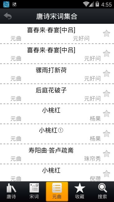 作为专业的古典文学阅读平台,本应用系统整理了唐诗、宋词、元曲三大体裁的经典作品,涵盖李白、杜甫、苏轼等数百位名家的代表作。所有诗词均经过专业校勘,配有创作背景介绍和逐句解析,部分作品还附有名家朗诵音频。独特的"小图标提示"功能能直观标注带备注的诗词,用户可通过分级目录快速定位不同朝代的文学作品,打造沉浸式的诗词阅读体验。