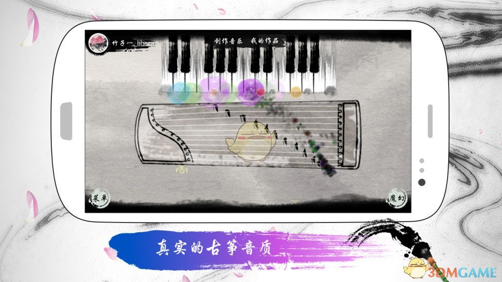 《魔幻古筝》巧妙融合了传统中国水墨画元素,以现代科技手段重新诠释古筝艺术。这种独特的视觉呈现方式,让用户在演奏时不仅能听到优美的旋律,还能欣赏到极具东方美学的画面效果。