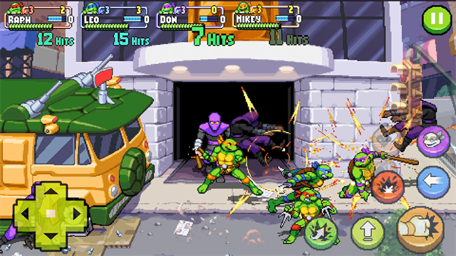 丰富的剧情:游戏剧情紧扣《忍者神龟》系列,为玩家带来沉浸式的冒险体验。剧情过场采用精美的像素动画呈现,角色对话幽默风趣,完美还原了原作风格。