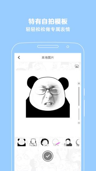 无广告表情软件,特有的自拍模板,支持人脸识别自动生成专属表情,轻松做属于你的专属表情;