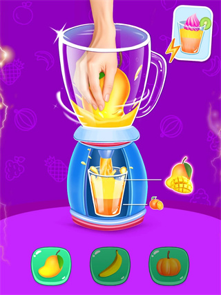 独特的画面风格,采用清新可爱的卡通画风,Q版人物造型萌趣十足,流动的果汁呈现出诱人的光泽效果,每个细节都充满童趣魅力;