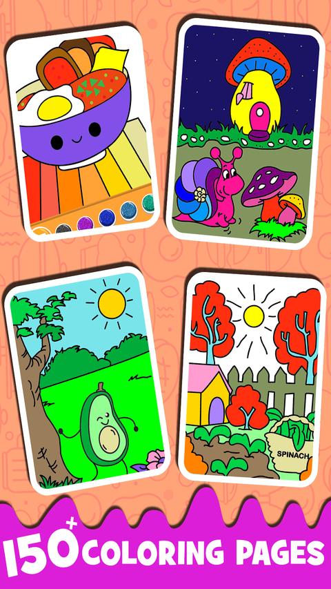 ・有趣的食物,带有卡哇伊风格的填色软件,包含水果派对、水果乐园等主题场景,让涂色过程更具故事性和趣味性