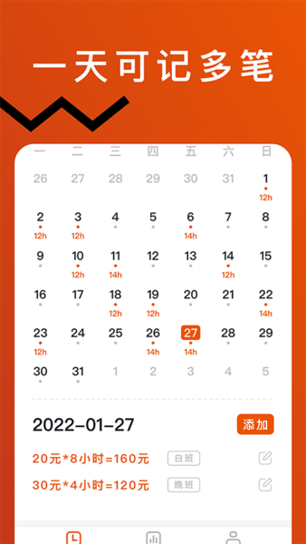 智能计算功能:预设小时工资标准后,系统自动计算每日工时收入,省去手动计算的麻烦;