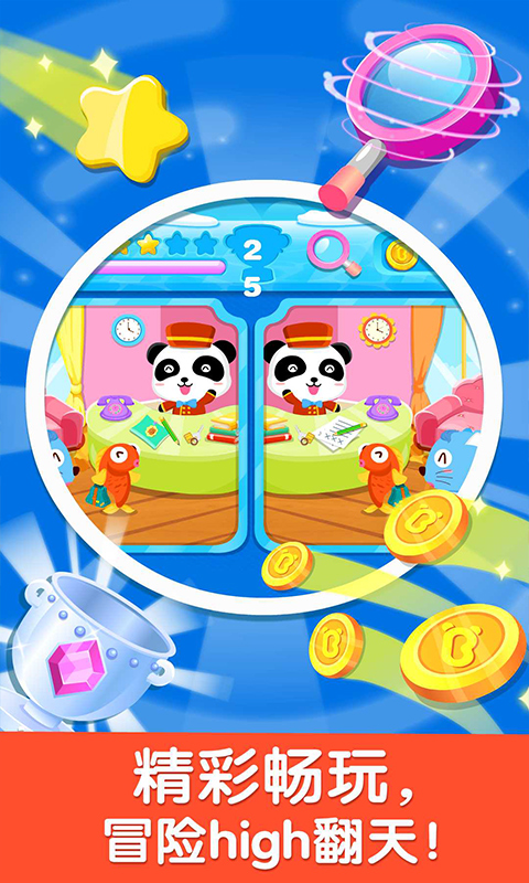 【神奇道具助闯关】:游戏贴心地设计了辅助系统,当孩子遇到困难时,可以使用积攒的金币购买放大镜、提示灯等道具。这些道具不仅造型可爱,使用效果也十分直观,比如放大镜会高亮显示差异区域3秒钟。道具系统既保证了游戏的可玩性,又避免了孩子因反复失败而产生挫败感。