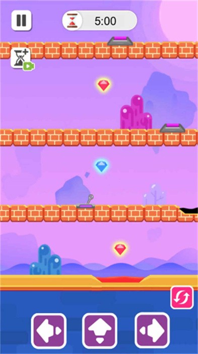 玩家可以按照里面提供的玩法操作步骤,使用转换按键来切换角色,然后配合的前进通过关卡;游戏优化了角色切换机制,新增了快捷切换手势操作,让双角色控制更加流畅。同时加入了角色技能系统,冰角色可以冻结水面,火角色能够融化冰块,为解谜闯关带来更多可能性。