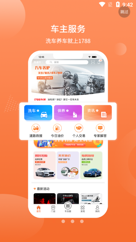 车主服务:1788平台整合了全国优质洗车养车资源,用户只需一键下单即可享受专业服务。平台严格筛选合作商户,确保服务质量,让您的爱车得到最细致的呵护。无论是日常清洁还是深度养护,都能满足您的个性化需求。