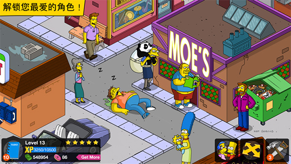玩家将扮演主角霍默·辛普森,在核电厂事故后负责重建春田镇。通过完成各种有趣的任务来解锁新的角色剧情,这些故事任务会以幽默诙谐的方式推动游戏进程,比如帮助邻居种树或解决社区纠纷。游戏中可以收集金钱和甜甜圈等资源,用于建造新设施、装饰城镇或加速工程进度。高度自由的建造系统让玩家可以随心所欲地规划城镇布局,打造心目中的理想城市,同时还能与众多熟悉的动画角色互动,体验独特的《辛普森一家》式幽默。