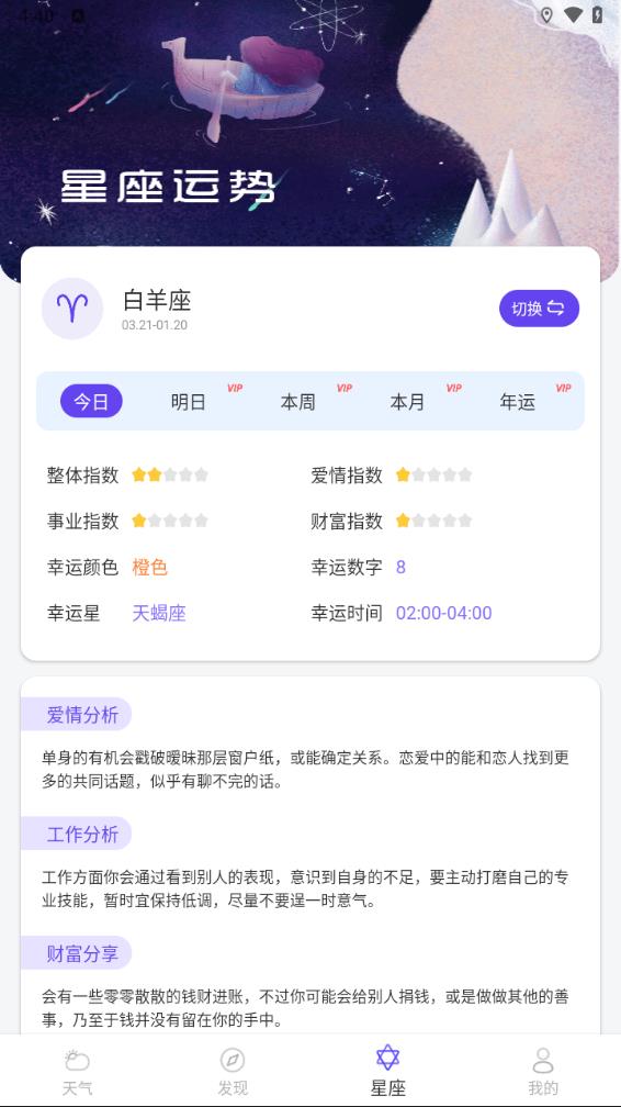【实时天气】实时显示当前位置的天气预报信息,包括温度、湿度、风力等详细数据;
