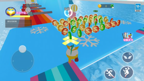 2、提供丰富的道具和障碍设计,以及隐藏关卡等玩法元素。从加速鞋到无敌护盾,从弹簧板到移动平台,各种道具和机关的组合让每次跑酷都充满变数,考验玩家的临场应变能力。