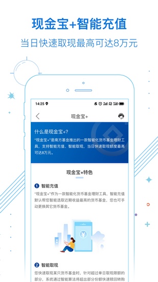 1、现金宝:零手续费投资货币基金,收益远超活期存款,支持7×24小时随时取现,资金快速到账,流动性极佳。