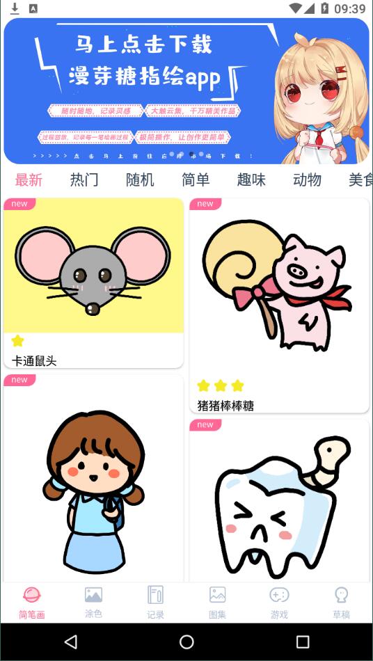 漫芽糖简笔画是一款专为绘画爱好者打造的创意工具,尤其适合零基础用户快速入门。它以清新可爱的界面风格和直观的操作逻辑为核心,让每个人都能像品尝糖果般享受绘画的甜蜜。软件突破传统绘画软件的学习门槛,通过智能引导和趣味互动,将复杂的绘画过程转化为简单有趣的创作体验。无论是想随手涂鸦放松心情,还是系统学习简笔画技巧,这款软件都能提供恰到好处的支持,让艺术创作变得像呼吸一样自然。