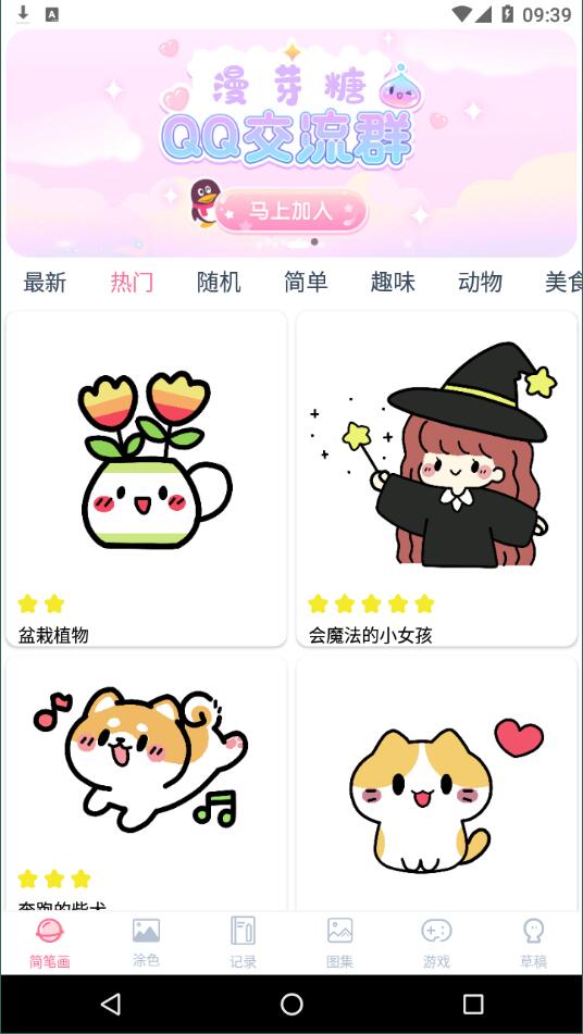 1.漫芽糖简笔画是一款专注于简笔画创作的绘画软件,采用独特的糖果系设计语言,让绘画过程充满童趣和愉悦感。