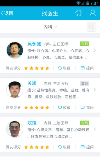 2、拥有大量的医生、专家在线,凭借业界先进的"云健康技术,随时随地为用户提供最专业、及时的健康咨询服务;平台建立了7×24小时值班制度,确保任何时段都有医生在线值守。医生团队覆盖全国三甲医院,包括多位主任医师和学科带头人。