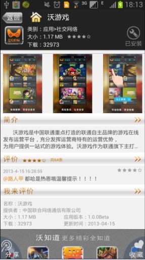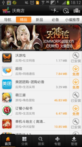 2.每月18日沃享会员日,全场万款应用参与促销,部分精品低至1折并赠送双倍积分