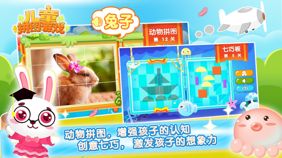 《兔宝儿童拼图》是一款专为学龄前儿童开发的益智类手机游戏,特别适合3-5岁幼儿使用。游戏采用简洁明快的界面设计,所有操作按钮都经过放大处理,方便小朋友独立操作。游戏内容涵盖日常生活常见的物品和场景,通过拼图形式帮助孩子认识世界。每周都会更新拼图素材库,保持游戏的新鲜感。游戏设置了简单、一般、困难三种难度模式,家长可以根据孩子的能力选择合适的挑战。完成拼图后,可爱的兔小贝会送出儿歌、故事等奖励,让孩子在游戏中获得成就感。这款游戏不仅能培养孩子的专注力,还能促进亲子互动,是家庭早教的好帮手。