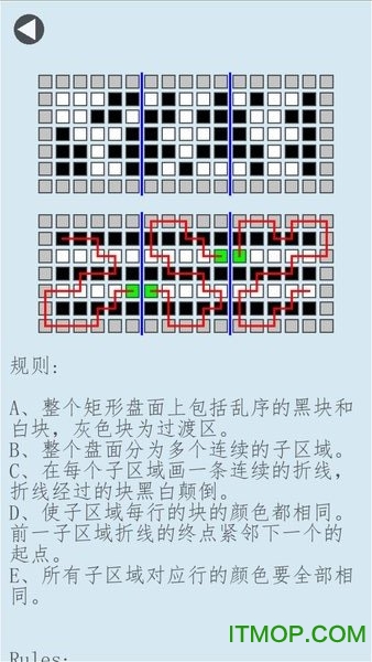 板的尺寸从4*3到5*6,最新版本更扩展至6×7的超大尺寸,为不同水平的玩家提供多样选择。2、子区域的数目从1到3个,通过增加区域间的关联性来提升解谜复杂度。3、简洁的界面和设计,采用极简主义风格,去除一切干扰元素,让玩家可以完全专注于逻辑思考。游戏还特别设计了平滑的动画效果,在玩家绘制折线时会有流畅的颜色翻转过程,既增强了操作反馈,又提升了游戏体验的愉悦感。难度曲线经过精心调整,确保每个阶段的挑战都恰到好处。