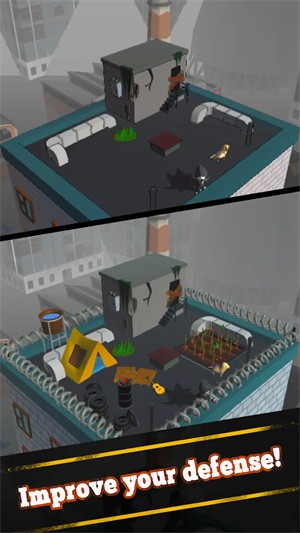 【核心机制:动态防御体系】游戏突破传统塔防的平面布局,在多层立体屋顶场景中构建出极具深度的防御系统。玩家可自由组合主动类陷阱(如可瘫痪群体的电磁脉冲网)与被动类陷阱(如持续腐蚀地砖),通过物理碰撞和元素反应形成连锁杀伤效果。每波攻势后的升级选择将永久影响防御体系发展路线,而严苛的资源限制与永久死亡机制,则要求玩家在短期生存与长期发展间做出战略抉择。独特的屋顶倾斜角度设计更增加了弹道计算和陷阱覆盖范围的策略维度。